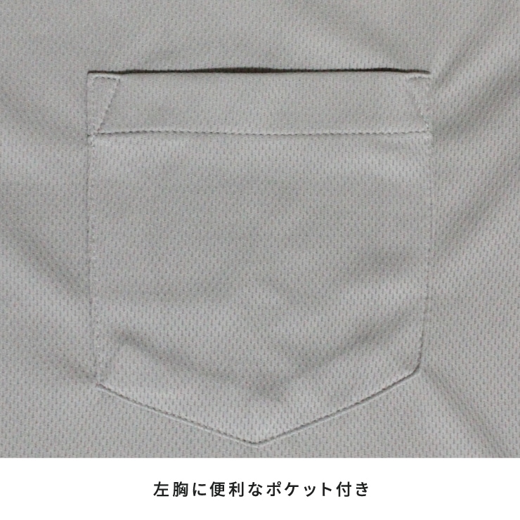 通気性に優れた吸汗速乾素材を採用。汗をしっかり吸って素早く乾燥させ、サラッと快適な着心地をキープ。ポリエステル100%でお手入れも簡単。衿元は凹凸のあるラインがさりげないアクセント。