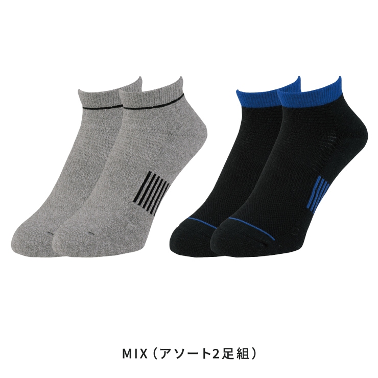足臭・汗臭の3大要因を徹底的に分解消臭。日本製消臭糸”ニオイクリア”を編み込んでいるため繰り返しの洗濯にも強く、お手入れをすれば半永久的に消臭効果が持続。足首前面は通気性の良いアコーディオンメッシュ仕様。土踏まずをしっかりサポートし、着用時のフィット感を向上。足底内側はクッション性のあるパイルを採用。ズレ防止機能は足に合わせた設計。
