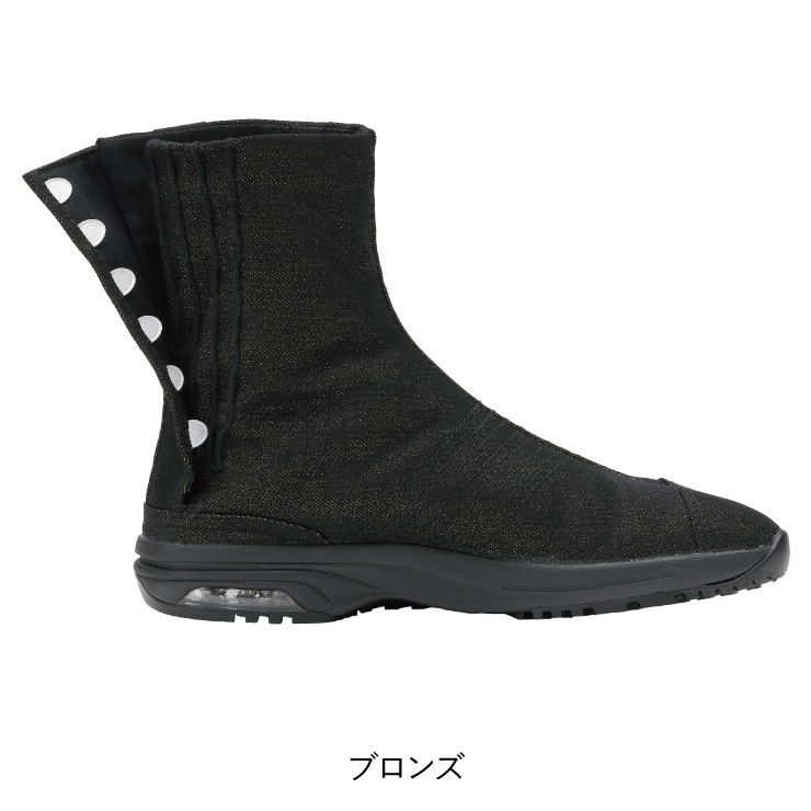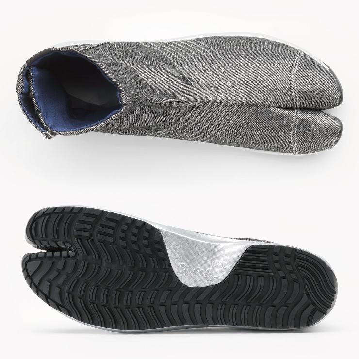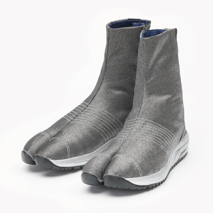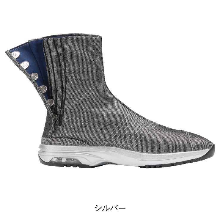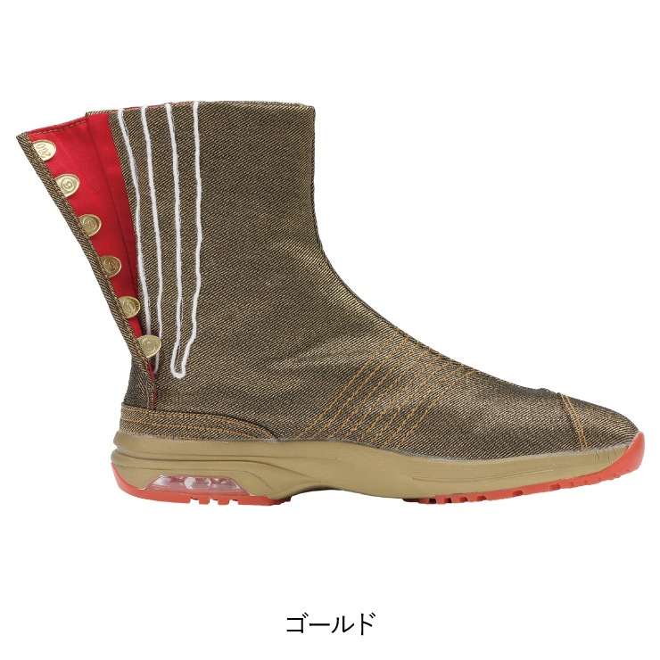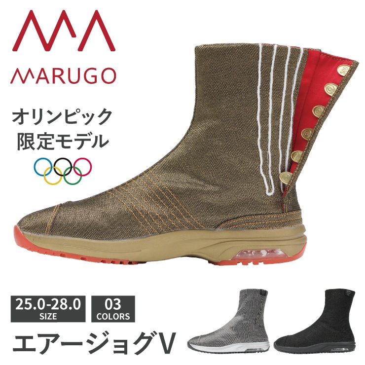 丸五の祭り足袋で最も人気のあるエアージョグV(ファイブ)から、数量限定オリンピックモデルが登場。アッパーには国産デニムのルーツとも言われている「井原デニム(KUROKI社)」を使用。足元を豪華に彩るので、祭りの衣装だけでなくファッションアイテムとしてもオススメ。