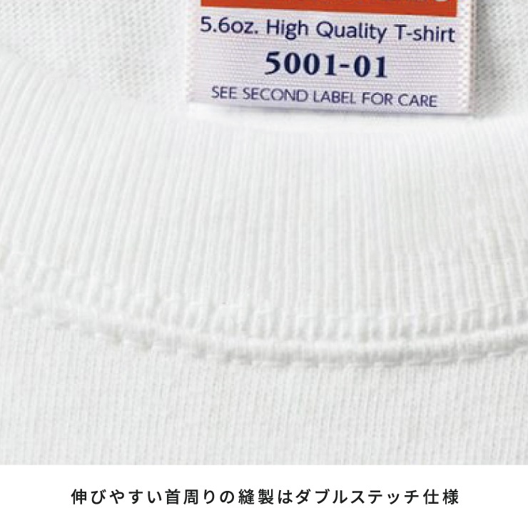 「よれない・透けない・長持ちする」といった三拍子が揃った上質な一枚。5.6オンスのちょうど良い生地感と強度が魅力。首周りの縫製に「ダブルステッチ」を採用。丈夫で長く着用できるので、洗濯を繰り返してもへたれにくいのが特徴。