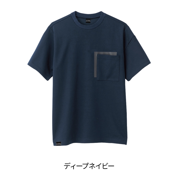 生地の表側は綿素材、裏側はポリエステル素材という特殊編み。ヘビーウェイトTシャツのような丈夫さと手触りはそのままに、シワにもなりにくいプレーティングニット。カジュアルなデザインながら、接触冷感や吸汗速乾性に優れた生地、便利なポケットなど機能性も抜群。