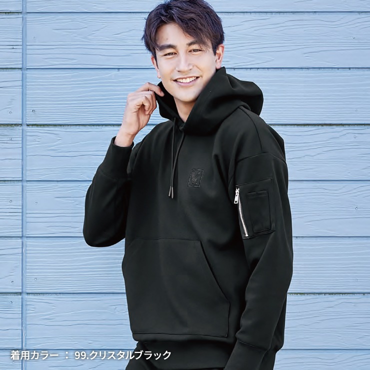 抜群の動きやすさを追求したストレッチ性の高いソフトなスウェット素材。肌触りが良く最高の着心地を実現。オーバーサイズでゆったりとしたシルエットのオンオフにとらわれないカジュアルパーカー。