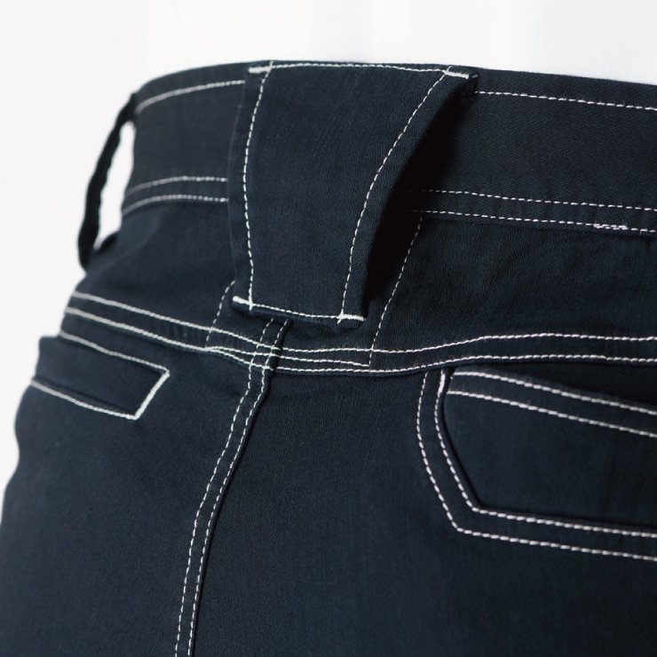 両側ポケット / 右前カラビナループ / 後身両側ポケット / 両側カーゴポケット / 補強布付きベルトループ