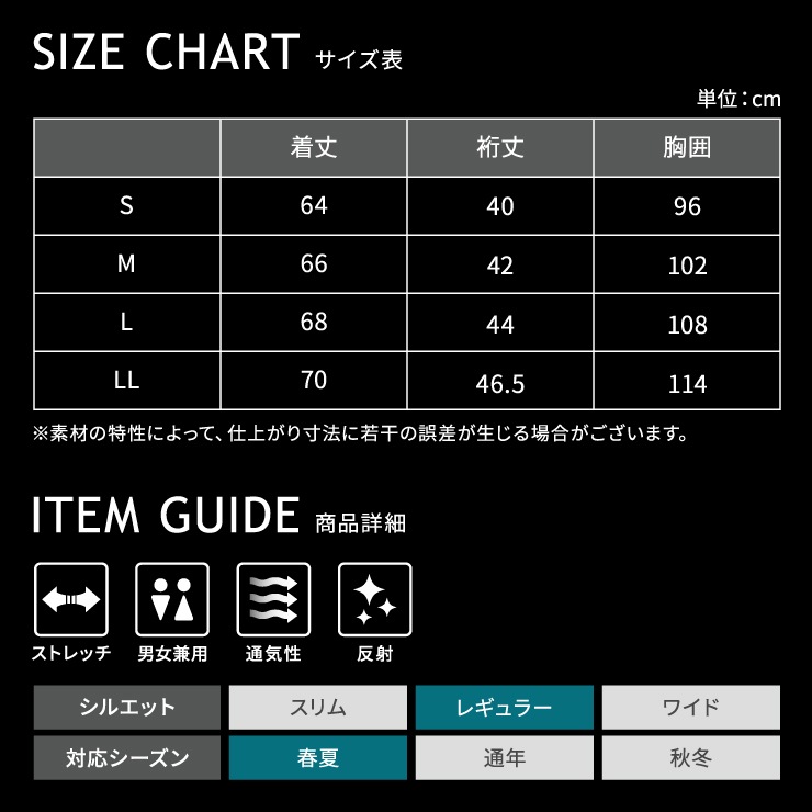 左胸ポケット / 左胸ペン差しポケット / 反射ネーム / 裾スリット仕様