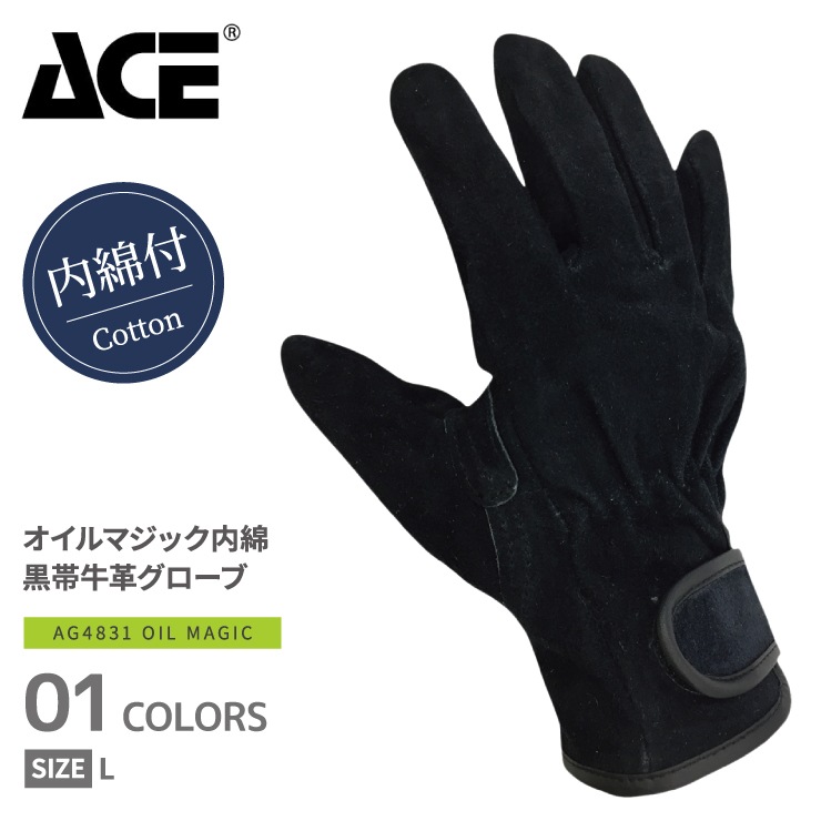 AG4831 オイルマジック内綿 黒帯牛革グローブ 1双