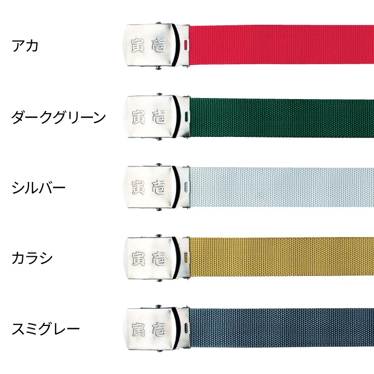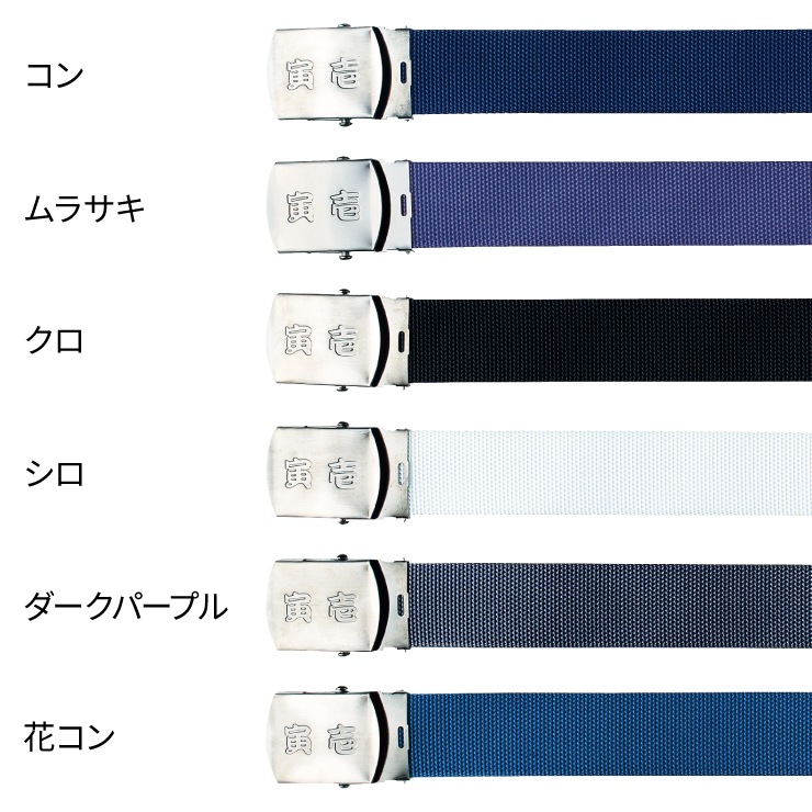 寅壱ロゴの型押しが魅力的な信頼度抜群のGIベルト。バックルが取り外せるので、本体を切って短くすることが可能。ウエスト100cm程度まで対応。