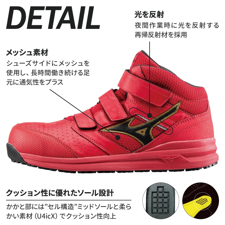 大きいサイズ / 軽量 / 衝撃吸収 / 耐滑 / 再帰性反射