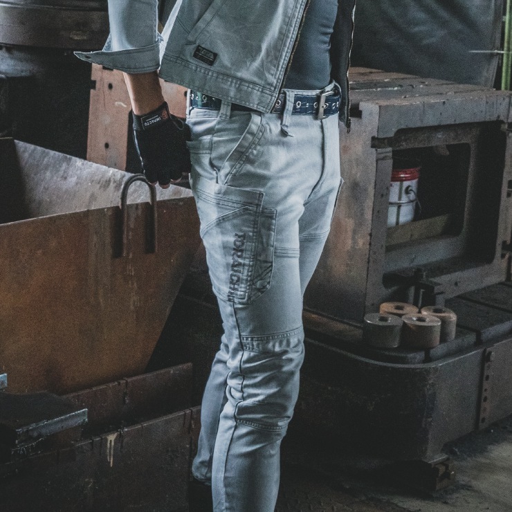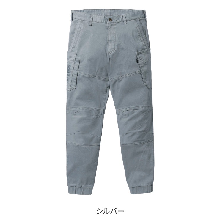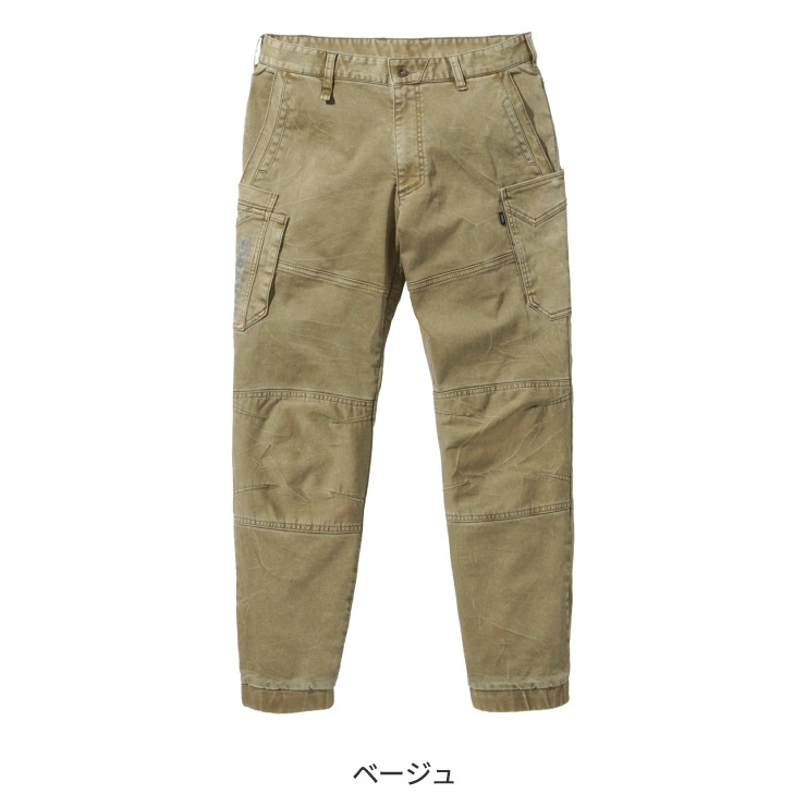 両側ポケット / 右前カラビナループ / 後身両側ポケット / 両側カーゴポケット / 右側ペン差しポケット / 膝裏ニーパッド対応 / 裾半フライス仕様