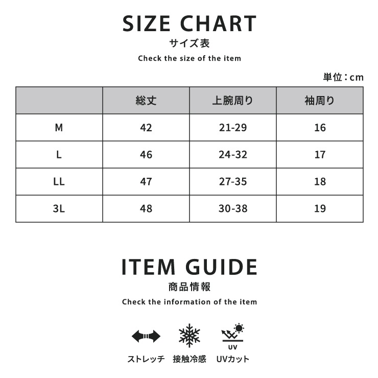 大きいサイズ / 男女兼用 / ストレッチ / 吸汗速乾 / 接触冷感 / UVカット