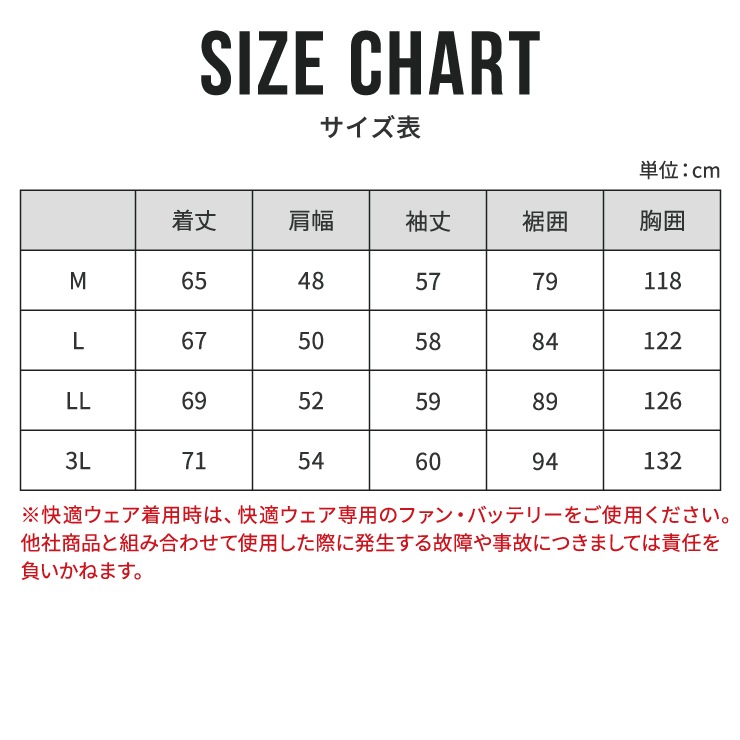 ※快適ウェア着用時は快適ウェア専用のファン・バッテリーを必ずご使用ください。